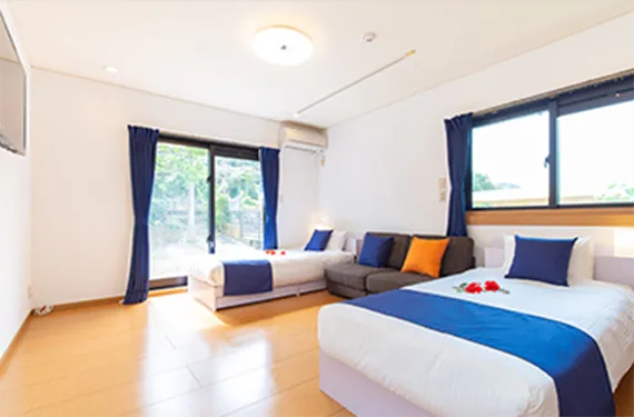 石垣ブルーの空の下、開放感あふれるスペースでご家族・ご友人の方々と贅沢時間を堪能。